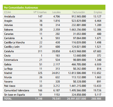 En España: ¿Qué comunidades tienen más volumen de franquicias como modelo de negocio?
