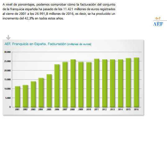 En el estudio sobre franquicias como modelo de negocio del que hablamos, podemos ver como el porcentaje de facturación de estos modelos de negocio sube. Como siempre decimos, nada mejor que una imagen para dejar claro toda la información de forma más rápida y sencilla.